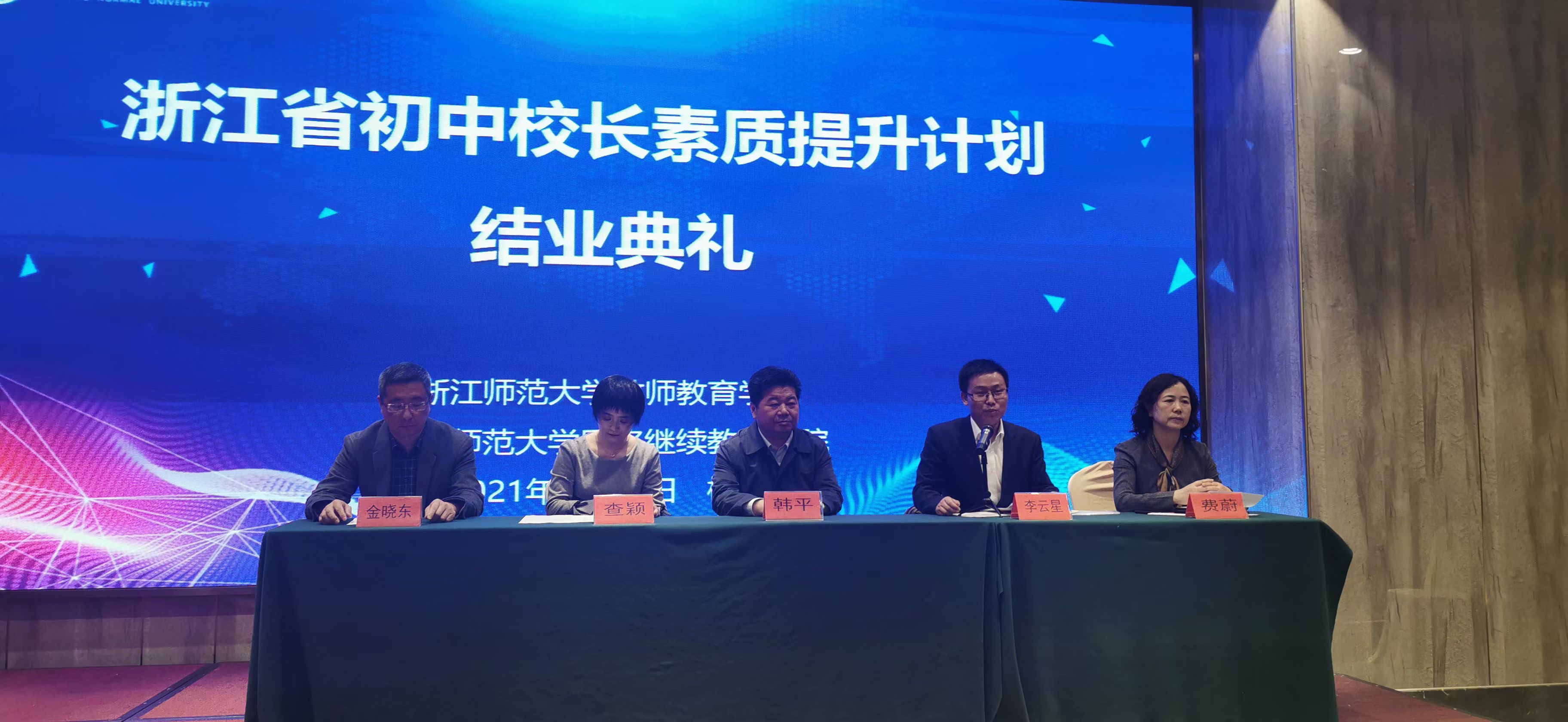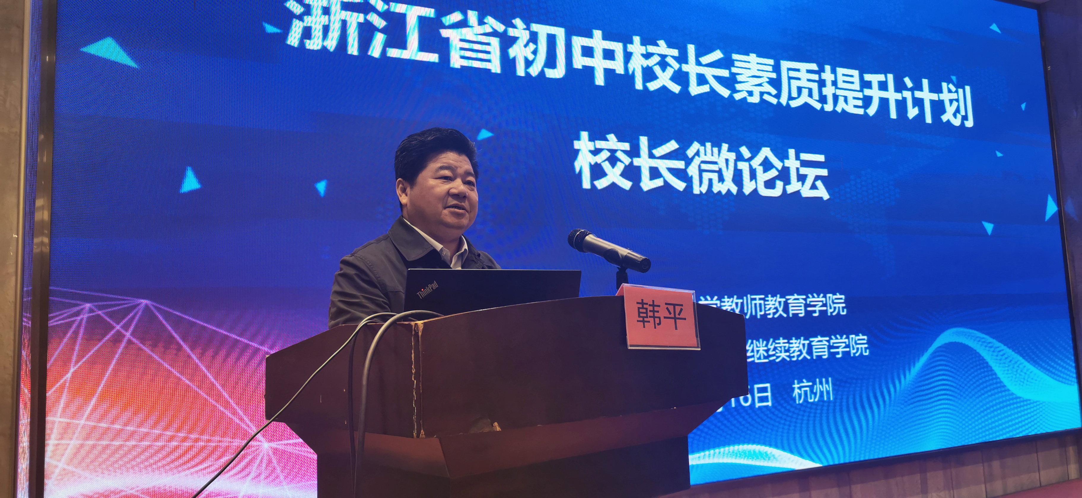 4月16日上午,浙江省初中校长素质提升计划(浙师大)第一期培训班圆满完成最后环节——“高质量·微论坛”和结业典礼。浙江省教育学会会长、浙江省教育厅原副厅长韩平,浙江师范大学教师教育学院党委书记查颖应邀出席本次活动。本次活动由原江干区教育局副局长、浙江省特级教师、浙师大教师教育学院高质量育人综合改进研究中心副主任费蔚女士主持。