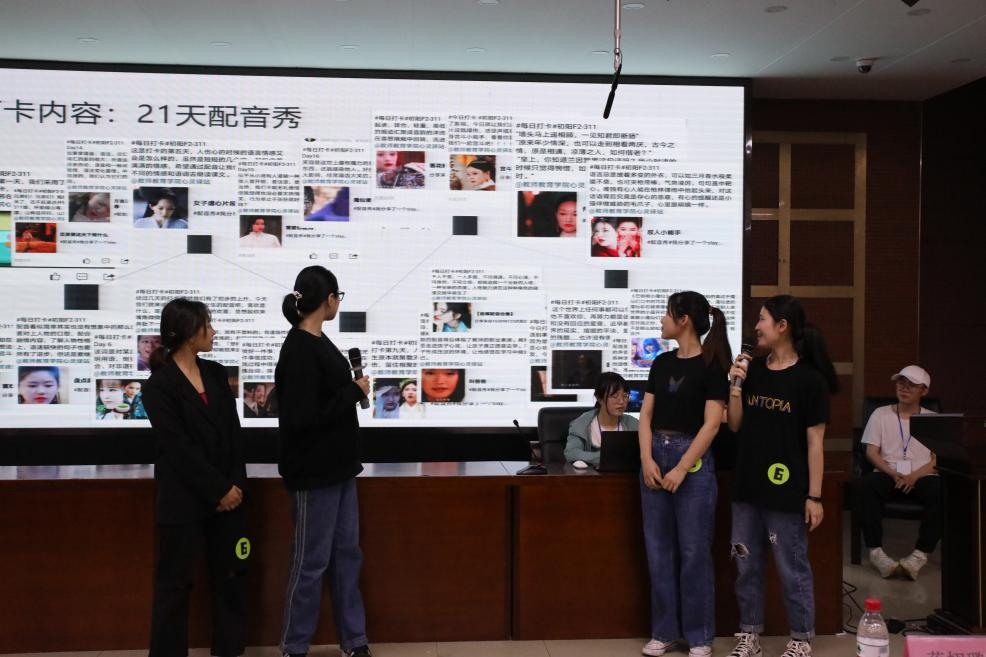 第一个上场的是来自杏园女寝8-403的六神花露水寝室,小学教育专业的她们通过对游戏化教学的思考,想到可以用游戏导入一个新的知识点,也可以用游戏复习学过的知识。一堂简短的模拟课、一局“你来比划我来猜”的游戏,将她们的专业知识与团体协作的打卡内容完美融合。