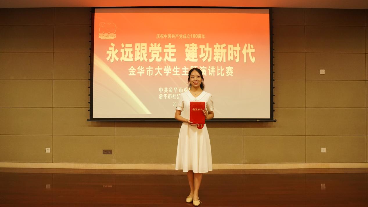 本次比赛给予大学生展示与交流的平台,激励引导深入学习党史,挖掘身边故事。在这次比赛中,我从不同参赛者的演讲内容中学习到了各个历史时期金华在党领导下取得的发展成就,感受到进入新时代以来金华在当好改革开放排头兵、创新发展先行者的生动实践中取得的伟大成就。这激励着我要进一步铸牢信仰根基,积极将理论与实践相结合,为党和人民在教育事业中贡献一份力量。