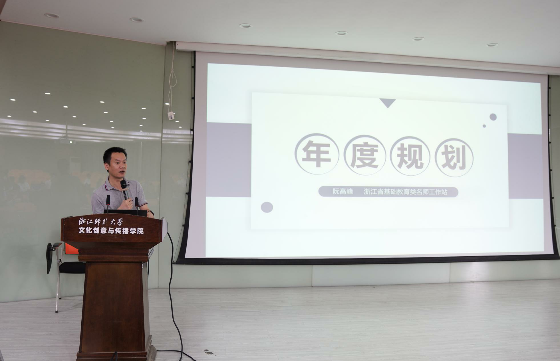 省基础教育类名师工作站站长阮高峰教授对本年度三项主要工作:工作室日常管理与服务;建研结合,成果提炼;辐射推广,展示风采等方面进行了解读。重点讲解了下半年组团送教及尖峰教育论坛的规划,组团送教将会继续面向新锐学校联盟组织开展,同时也将继续配合项目办做好永嘉县组团送教工作,积极探索与地方教育主管部门的合作。近期将开展中期检查、启动遴选示范工作室以及尖峰教育论坛,希望各工作室能继续加强研究能力,扩大工作室成果辐射范围。