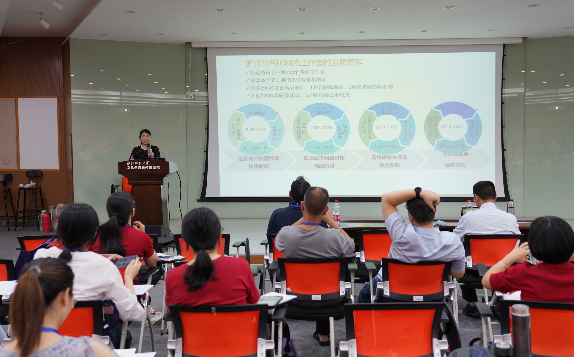 2021年7月8日-7月10日,浙江省在建名师网络工作室专题培训会在浙江师范大学顺利召开,省名师网络工作室项目办沈清老师、省基础教育类名师工作站站长阮高峰老师、以及217家基础教育类名师网络工作室的负责人及学科带头人出席会议。