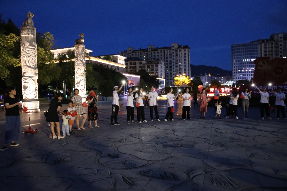 为庆祝中国共产党成立100周年,追忆红色历史,重温誓言初心,抒发对党的深情诉说与祝福,7月16日,“童心夏梦”实践队在浙江丽水龙泉时代广场开展快闪活动,用歌曲串烧,唱响青春之歌。一群热血的中华儿女用歌曲,向党、向祖国深情表白。