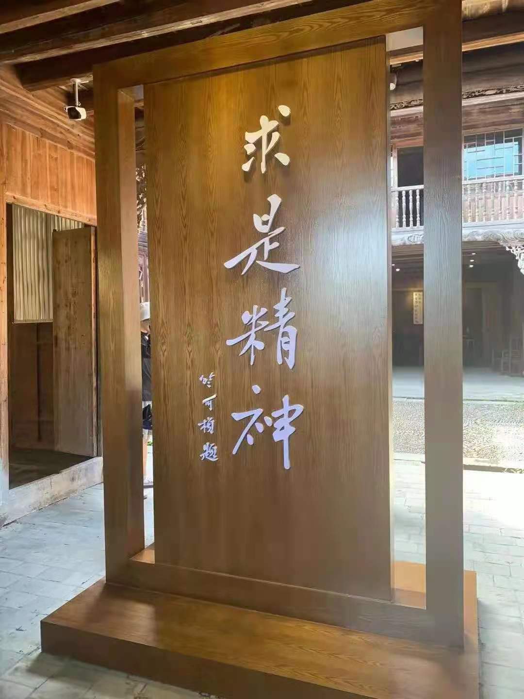 跨过门槛,映入眼帘的是竺可桢先生题写的“求是精神”。跟随着导游讲解的步伐,实践队队员逐渐了解战火纷飞中浙大校舍的变迁史。1937年“七七事变”后,抗日战争全面爆发,不久杭州告急,面对日本侵略者的大规模军事进攻,浙大不得不西迁,当时的浙大校长竺可桢为使福建、安徽等地的青年学生就读高校,择址龙泉,于1939年4月开设浙大分校,前后七年,在战乱中培育一千多名大学生,其中就有谷超豪、池志强、何志均等芳野英才。