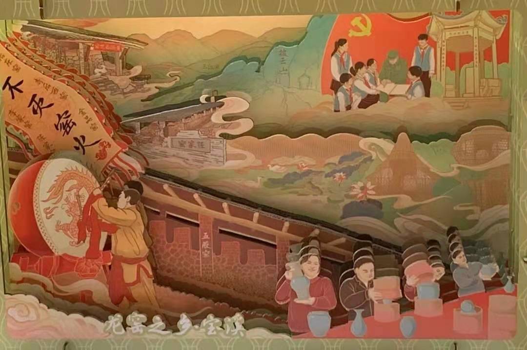 在中国制瓷史上,龙泉窑吸取各家所长,将中国青瓷艺术推向了极致,是窑址分布最广、生产规模和外销范围最大的历史名窑。“青瓷的薄胎厚釉是怎么看出来的呢?”“古代怎么控制裂纹釉的纹路疏密?”……同学们好奇地提出了一个个问题,讲解员一一耐心地作出了解答。透过滞留在窑址废墟上的浮尘,同学们见证着龙泉窑的历史兴衰,也见证了龙泉青瓷在多元创新发展中绽放出的耀眼光彩。
