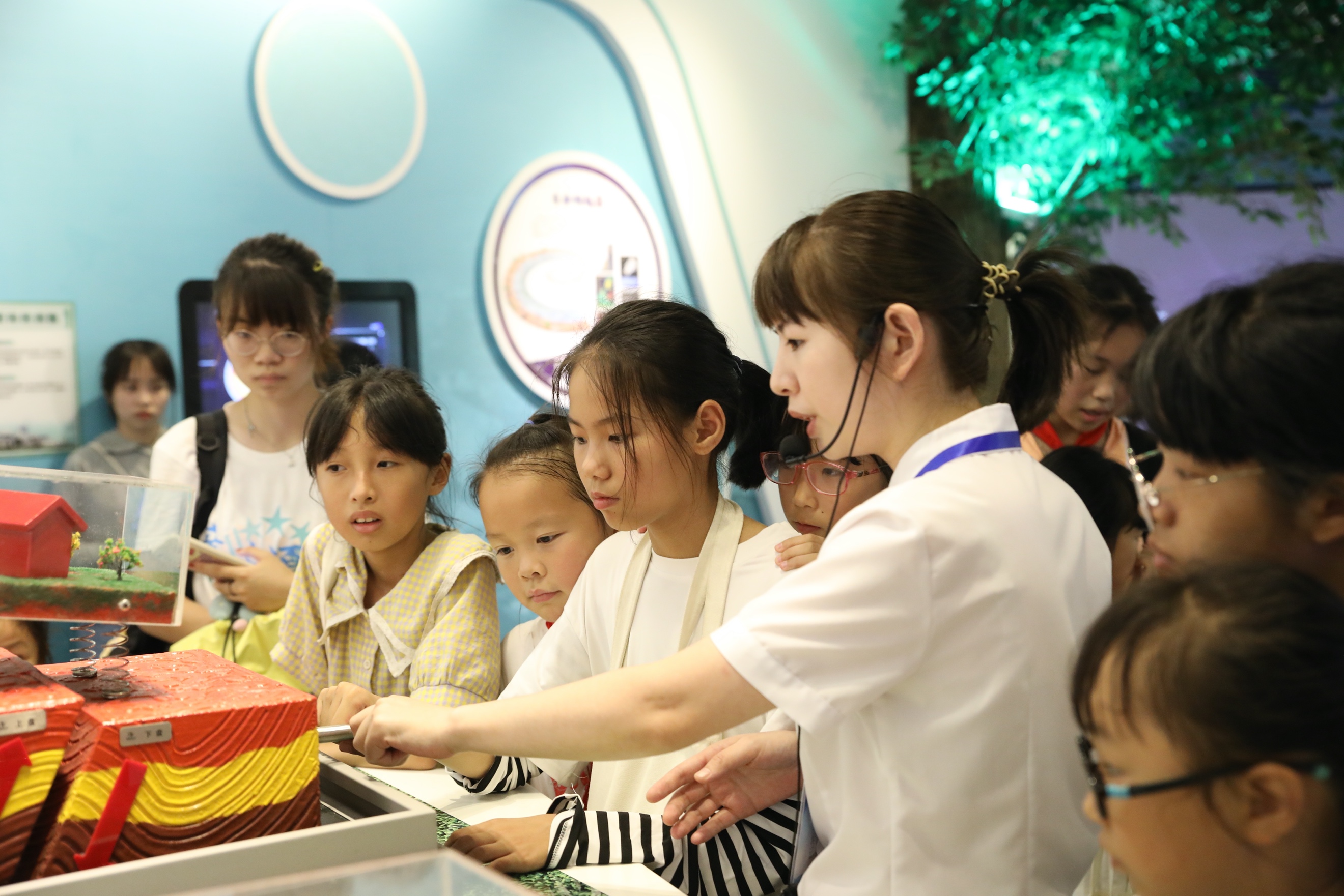 最后,队员与小朋友们来到了科技局,通过生动的展示模型了解了构造地震的分类,并在烟雾逃生通道、“地震小屋”等模拟情境的体验下潜移默化地记住了震时逃生与震后互救等救助知识。