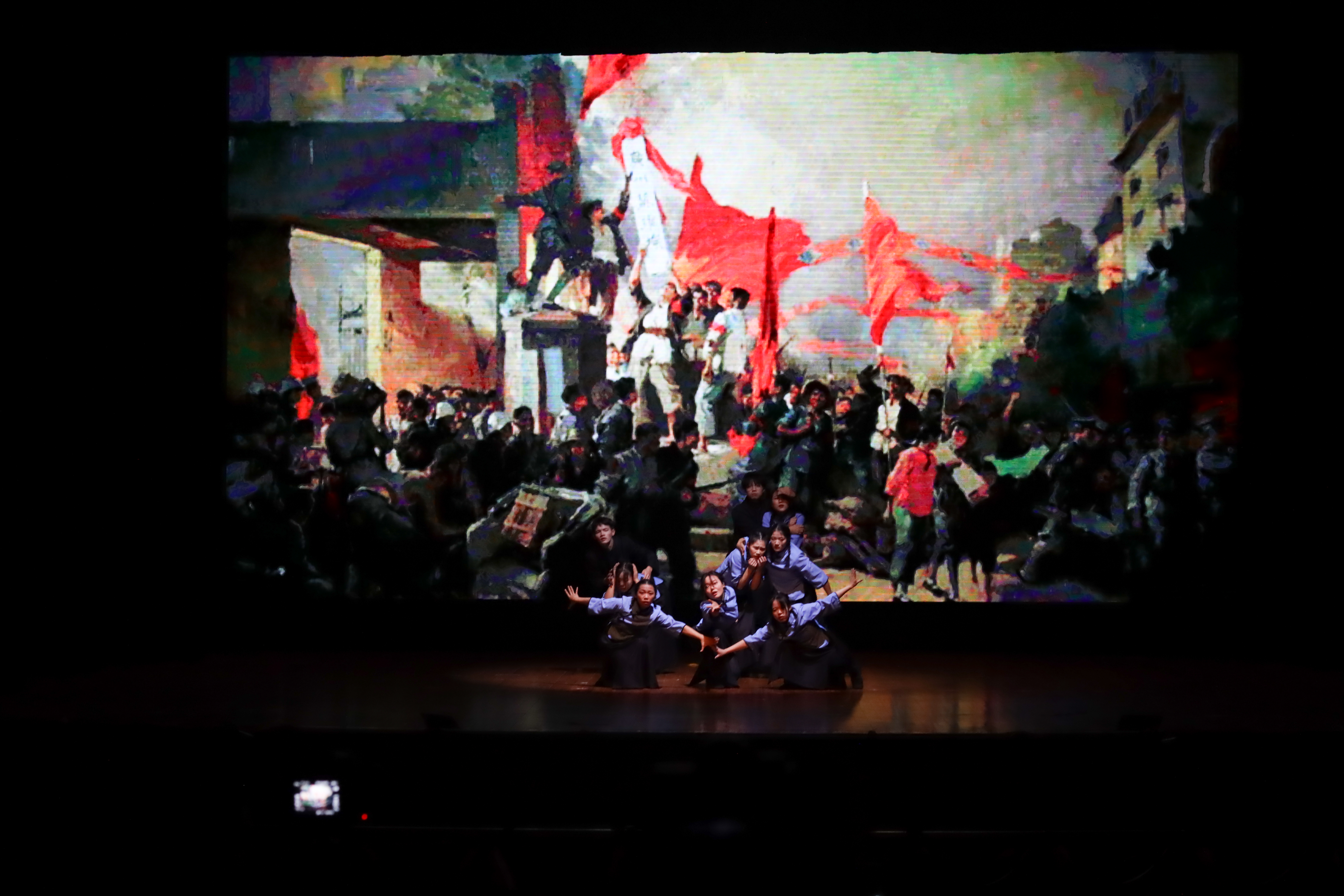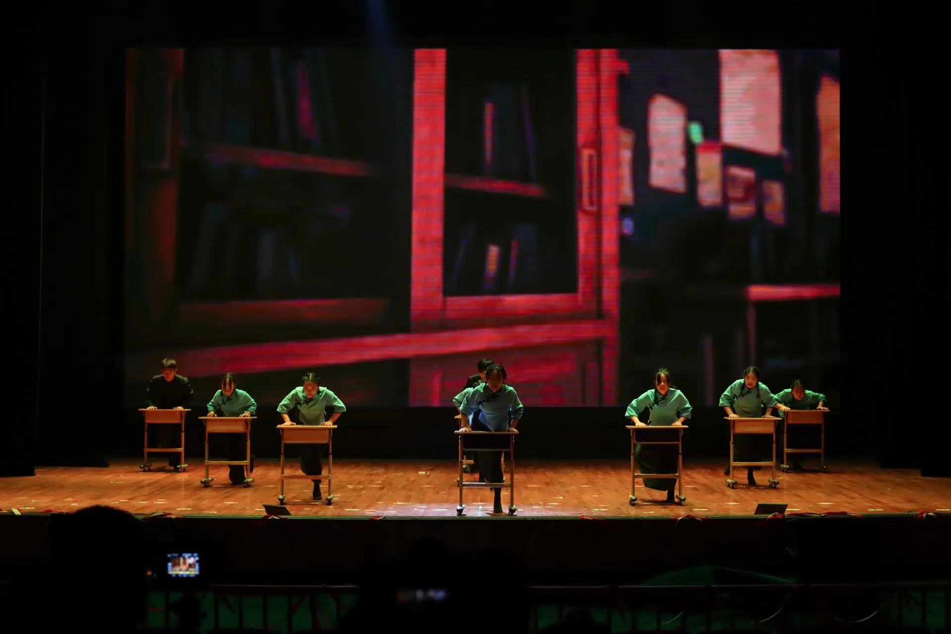 节目的故事发生在抗日战争时期,彼时杭州省立师范学院刚成立不久。在炮火连天、颠沛流离的岁月里,生灵涂炭,满目疮痍,哪怕只求一张课桌的方寸之地,都难于登天!青年学生们辗转奔波,居无定所,但依然牢牢攥紧书本,紧紧护好课桌,化信念为利刃,用自己的赤诚和热爱,为知识撑起一片纯净的天空。舞蹈队的同学以充满力量的动作、生动坚毅的眼神、丰富饱满的情感,再现了当时青年学生不畏艰险、奋发图强的爱国主义精神。