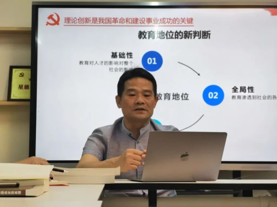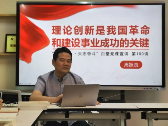 2021年6月23日晚,教育技术学系教师党支部全体成员齐聚17-711党员教师(教授)工作室,学院党委副书记、院长周跃良以“理论创新是我国革命和建设事业成功的关键”为主题,给全体党员带来了一堂富有学理性的生动党课。