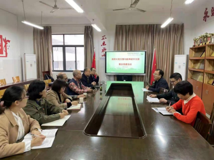 支部书记陈伟强教授还就双方联合党建、学校课程建设和青年教师培养与航埠镇初中胡峰成书记进行了深入地交流。双方在合作交流的形式、深度等方面展开了热切的商讨。