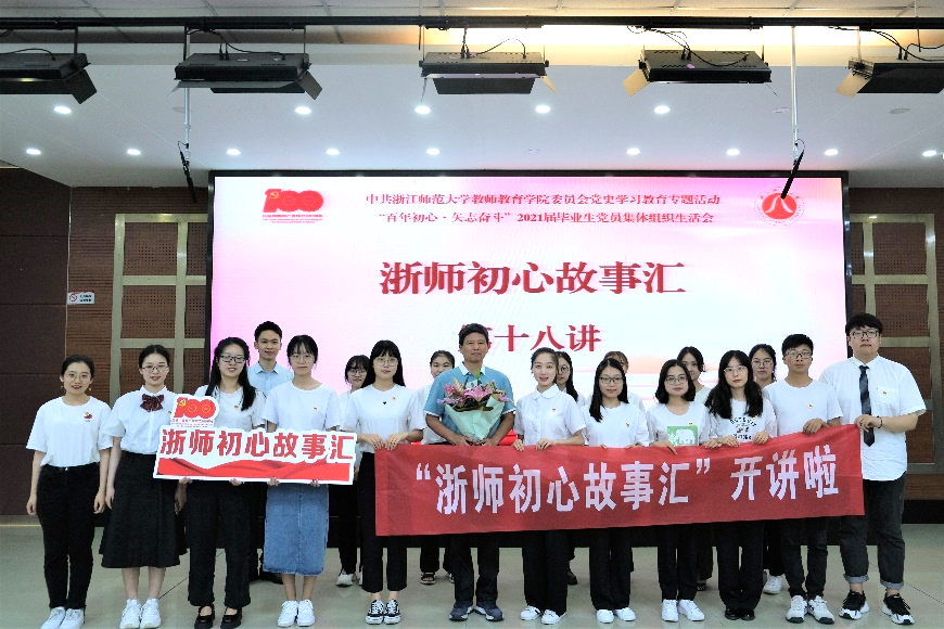 2021年6月5日,“浙师初心故事汇”第十八讲于17幢112报告厅开讲,本次活动特邀课程与教学系退休党员教师马昌法与2021届全体毕业生党员分享初心故事。