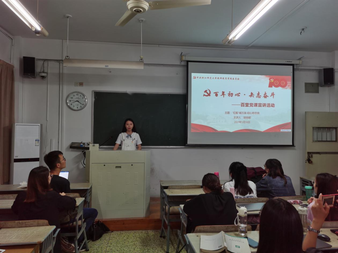 为缅怀革命英雄,领会红船精神,5月18日晚,教育硕士研究生第四党支部党员胡翎都于16幢506教室以“红船破万浪 初心慰忠良”为主题,为全体党员上了一堂别开生面的党史学习课。