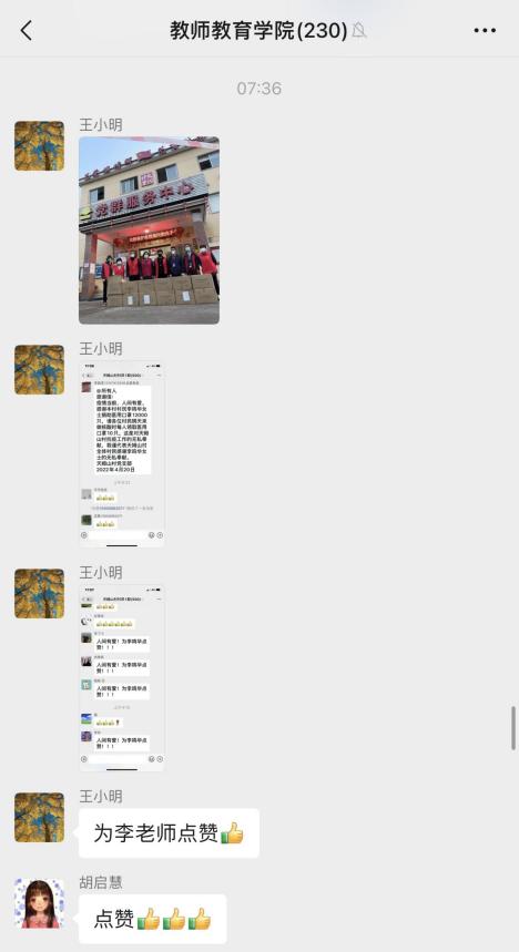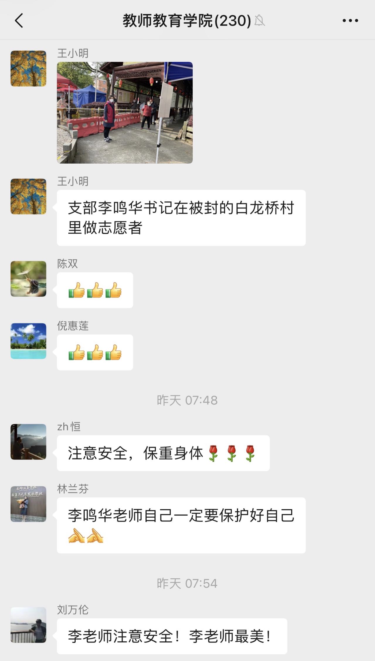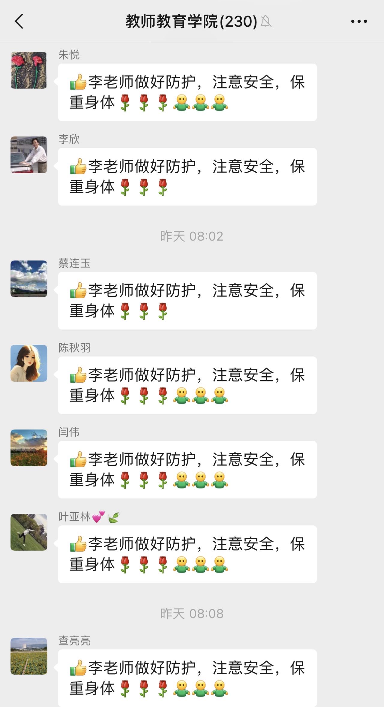 图为教师教育学院教师工作群对李鸣华老师的关心和点赞