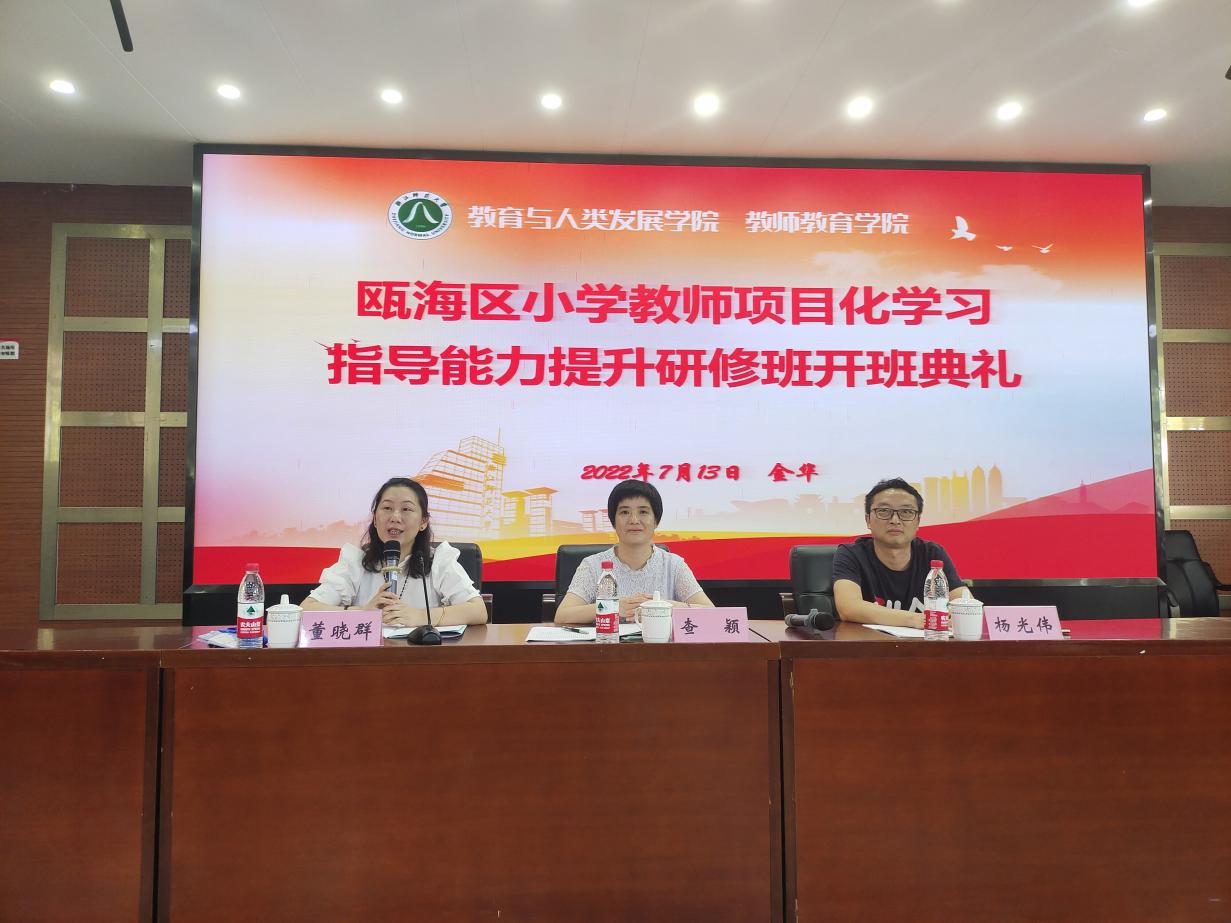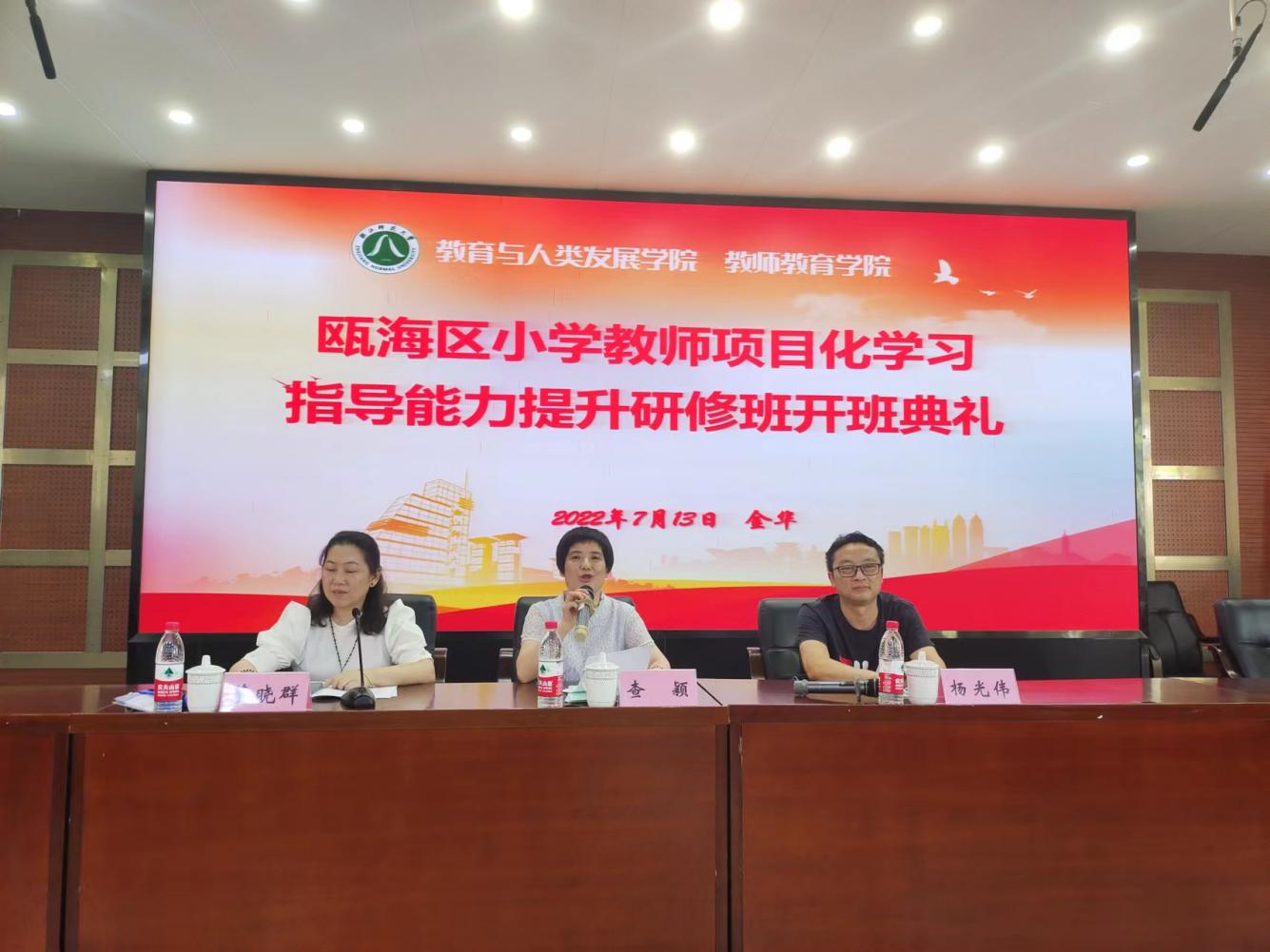 7月13日下午,浙江师范大学教师教育学院举办了瓯海区小学教师项目化学习指导能力提升研修班的开班典礼,kaiyun开云官方网页版党委书记查颖致辞,瓯海区教师发展中心(教育研究院)副院长董晓群讲话。瓯海区230多名小学骨干教师参加培训。