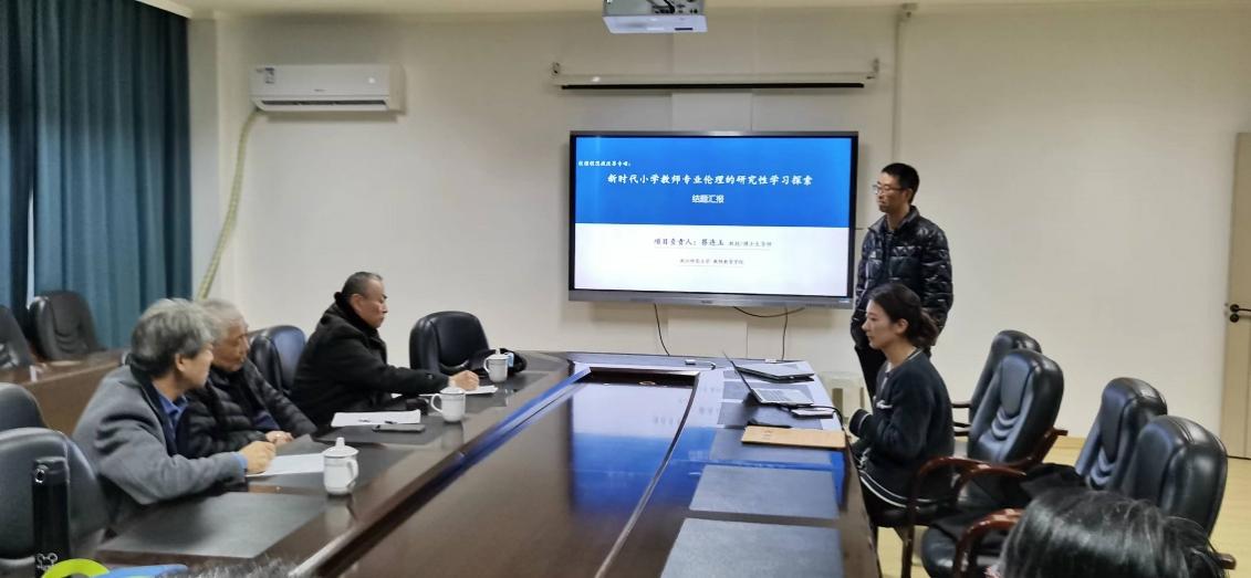 随后,蔡连玉老师的课题组成员汇报了《新时代小学教师专业伦理的研究性学习探索》教学改革项目,依托《班级经营》这门课,让学生以研究性学习的方式,探索教师专业伦理问题。改革取得了丰富的研究与实践成果。形成了多篇教改专著论文,并集成了专著。专家对此项目也提出了意见与建议。