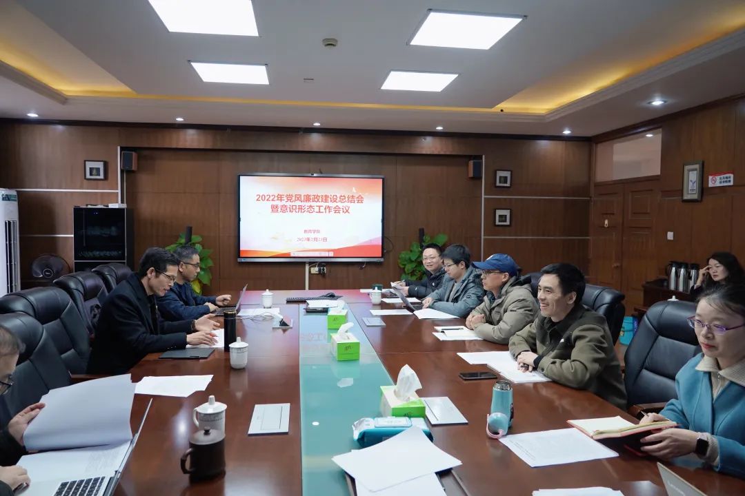 2023年2月23日上午,教育学院在17幢401会议室召开2022年党风廉政建设总结会暨意识形态工作会议,系统总结一年来的党风廉政、意识形态工作,研究分析当前的新情况、新问题,推动全面从严治党走深走实,持续涵养风清气正的政治生态和育人生态,助力学院各项事业高质量发展。学院党委书记俞明祥主持会议,学院党政领导班子成员、工会主席、各科室负责人、系主任等参加会议。