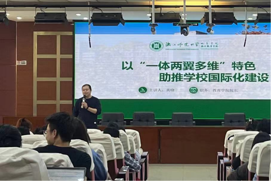 黄院长介绍了浙江师范大学堪萨斯大学中美联合学院、俄亥俄州立大学访学等建设举措。详细地介绍了与俄亥俄州立大学访学的相关细则,鼓励同学们抓住机遇,扩展自身视野,提高国际竞争力。