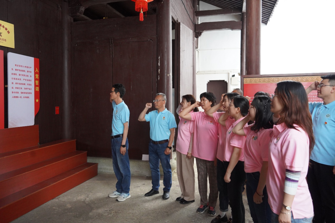 在纪念馆负责人的讲解下,党员同志们参观了展厅内一些战争年代的老物件,认真研读了金萧支部群英谱,重温了21名革命烈士的21段红色事迹,深刻学习了先驱们“统战、凝聚、融合、和谐”的战略思想。随后,在俞明祥书记的带领下,党员们面对党旗,右手紧紧握拳,整齐而庄重地宣誓,“我志愿加入中国共产党,拥护党的纲领,遵守党的章程……”一声声铿锵有力的誓言在纪念馆内彻响,是党员同志们不忘初心、牢记使命的庄严承诺;一双双坚毅灼热的目光,充分展现着党员同志们对党坚定不移的忠诚与信仰。