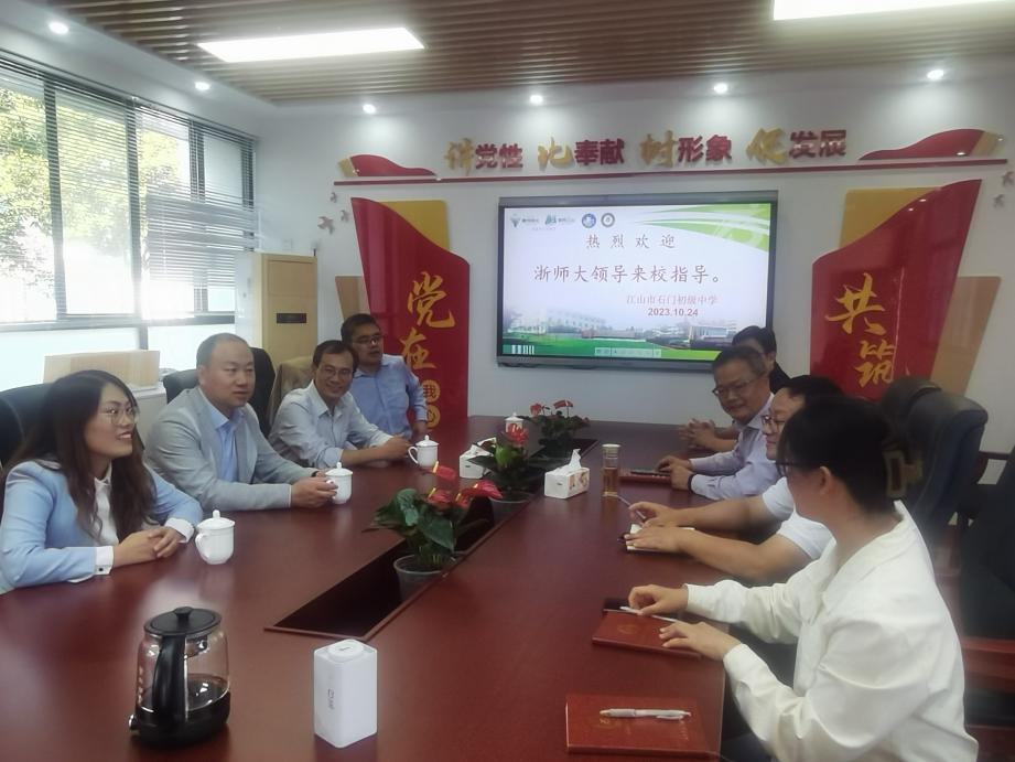 走访第一站来到了江山中学。余烨斌副校长、周凯旋副主任等对教育学院一行的到来表示热烈的欢迎。