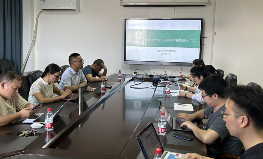 7月3日下午,教育学院在17幢701会议室召开小学教育师范认证中期审核及整改工作推进会,副院长王良辉、小学教育专业骨干教师、教务办等工作人员参加会议。会议由小学教育专业主任周晓燕主持。