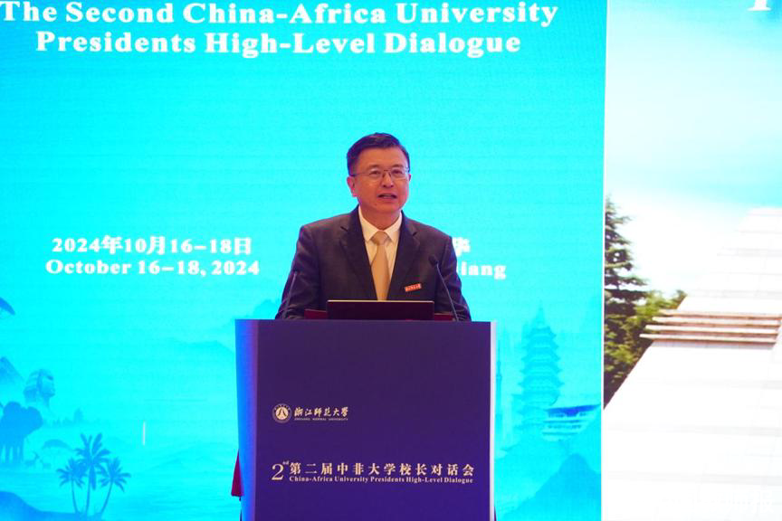10月16—17日,第二届中非大学校长对话会在浙江师范大学举行。此次对话会是2006年首届中非大学校长论坛的传承与发展,是深入贯彻落实2024年中非合作论坛峰会精神,进一步促进中非教育合作的重要举措。本届对话会的主题为“共享·创新·引领:面向未来的中非大学合作”,来自中国、加纳、南非、毛里求斯、尼日利亚、塞拉利昂、莱索托、肯尼亚、津巴布韦、加蓬、布隆迪、布基纳法索等国家的100多位嘉宾代表现场参会。