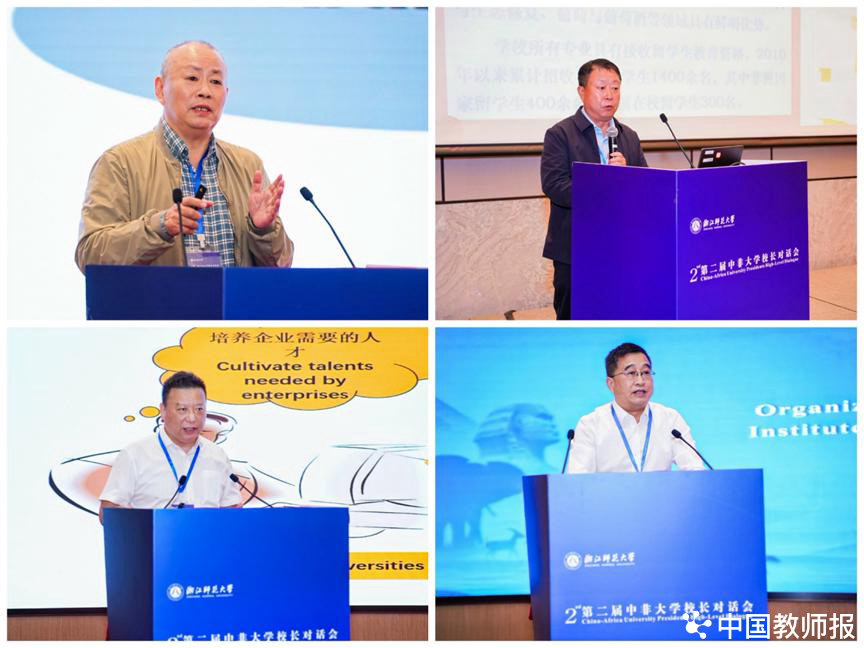 本届对话会还设有3个平行论坛五个主题,中非与会者分别就“数字赋能大学治理变革与教育资源共享”“中非科学教育协同促拔尖人才培养”“深化中非高校合作共筑人类命运共同体”“扎根教育实践深化中非研究者协同发展”“青年学者共话未来中非教育高水平合作”5个主题进行现场交流。中国高等教育学会学术发展咨询委员会副主任兼秘书长马陆亭、天津中医药大学副校长王耀刚、白城师范学院副校长张海龙、赣南师范大学副校长罗序中、井冈山大学党委副书记肖宜安、金华职业技术大学副校长陈海荣等50余名中非校长、教育管理者、研究者作了主题报告。平行论坛分别由浙江师范大学资深教授马陆亭、教育学院院长黄晓、副院长王占军、教育学院万秀兰教授、陈殿兵副教授、张燕军副教授主持。