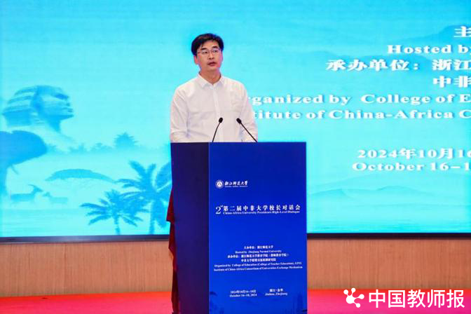 孙晓虎代表教育部教师工作司表示,教师队伍是教育强国第一资源,是教育高质量发展的决定力量,也是“和平、团结、繁荣、自强的新非洲”建设的重要依托力量。教师教育合作是中非高等教育交流与合作的重要组成部分和潜在拓展领域。浙江师范大学在推进中非教师教育交流与合作上积极探索、不遗余力、奋楫争先,取得突出成效。新时代的中非教师教育交流与合作要密切结合国际教师教育的最新发展动态,以教育家精神为指引、以《中非合作2035年愿景》《中非合作论坛——北京行动计划(2025-2027)》等重要政策为蓝图,力争实现高质量发展。愿我们各方能够提高认识站位、强化合作使命,加强政策对话、精准对接需求,善用数字资源、赋能教师教育,总结中国经验、贡献中国智慧,在教师队伍建设、优质资源开放、平台应用共享等方面加强国际交流合作,让世界人民共享教育文明成果。