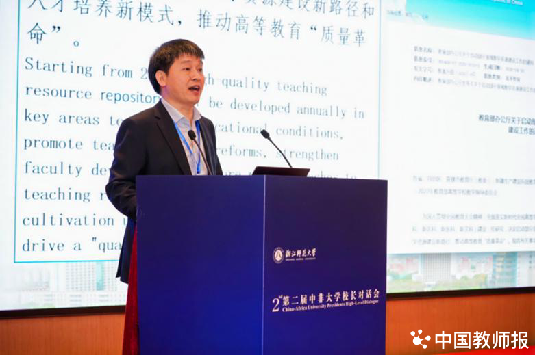 舒培冬表示,教育对外开放是教育现代化的鲜明特征和重要推动力,是建设教育强国的必然选择,是构建人类命运共同体、中非命运共同体的重要抓手。浙江省始终把教育对外开放摆在突出位置,坚持“引进来”和“走出去”双向统筹和提升,奋力打造教育对外开放高质量高地。近年来,浙江省在非洲人才培养、“走出去”办学、浙非科研合作等对非高等教育合作方面取得良好实效。未来,浙江省教育厅将一如既往地支持对非教育交流合作,并期待浙江师范大学能够继续发挥对非高等教育合作引领作用,推进各类对非合作交流项目“提档升级”,高水平、高质量打造教育对非合作的浙江范式和浙江经验。
