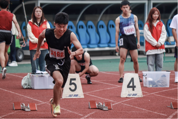 细雨绵绵,浇灭不了运动员们昂扬的斗志。在个人竞技项目中,姚哲宇高歌猛进,在男子甲组100米比赛中跑出“教育人”的加速度,斩获冠军。握持、助跑、起投……,徐满金蓄力一掷,在男子标枪比赛中一举夺冠。在女子400米跨栏比赛中,王欣婷在一次次的起跳与落地之间,棋逢对手,摘得亚军。在体力与意志力双重磨练的长跑比赛中,徐慧慧喜夺女子3000米亚军,余锦豪以优异的成绩摘得男子1500米亚军、男子5000米季军。