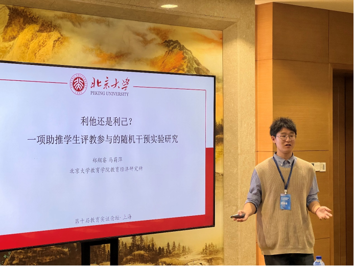 上半场报告由王占军教授主持。来自华东师范大学的王成梁同学以“MetaClassroom:建构编程教育的新样态”为题,探讨了如何通过虚拟课堂创新编程教育模式,强调了三维学习进阶(3DLP)理论在构建个性化学习体验中的作用。接下来,北京大学的于磊同学带来了“地方人才引进政策对家庭教育投资的影响”的报告,研究表明,地方人才引进政策显著增加了家庭在义务教育阶段的校外教育支出,尤其是在校外补习方面。扬州大学的刘鑫同学分享了“混龄教育中绘本教学对中班幼儿语言发展的研究”,分析了混龄教学对幼儿表达性语言能力的积极影响,特别是在“大带小”模式中表现明显。北京大学的郑翔睿同学通过一项随机干预实验,探讨了分数激励和减少评教题目数量在提升学生评教参与率方面的作用,发现分数激励效果更显著。浙江大学的陈加铿同学报告了高校职务科技成果赋权改革对新质生产力的推动作用,通过准自然实验数据表明,赋权改革显著促进了高校科技成果的有效转化。北京师范大学的崔馥千同学以“内卷”与“剧场效应”为主题,研究了大学生在学业和职业选择中的竞争心理,揭示了“内卷”现象对学生内部动机的消极影响。华中师范大学的朱楠老师介绍了针对小学数学学习困难儿童的“认知策略教学”干预策略,通过“Solve It!”认知策略有效提升了这些学生在数学问题解决方面的表现。吉林大学的王天骄老师探讨了班主任的学科背景对学生学业表现的影响,发现英语和数学教师担任班主任时对学困生成绩和班级氛围的提升更为显著。上半场的最后一位发言人是同济大学的王奕俊老师,他分析了延迟中考分流的教育效应,研究表明,适当延迟分流时间有助于学生的学业表现提升。