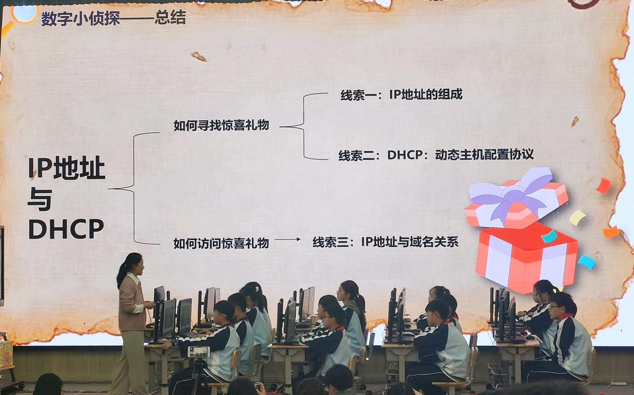 在张银玲老师的课堂上,学生们化身为数字小侦探,踏上了一场关于IP地址与DHCP的探险之旅。从惊喜礼物的网络追踪到IP地址的揭秘,再到DHCP动态分配IP的魔法展现,每一个环节都充满了趣味与挑战。通过实践操作与小组合作,学生们不仅学会了如何查找本机IP地址,更深入了解了IP地址的二进制表示及DHCP的工作原理,体验了学习的乐趣与成就感。