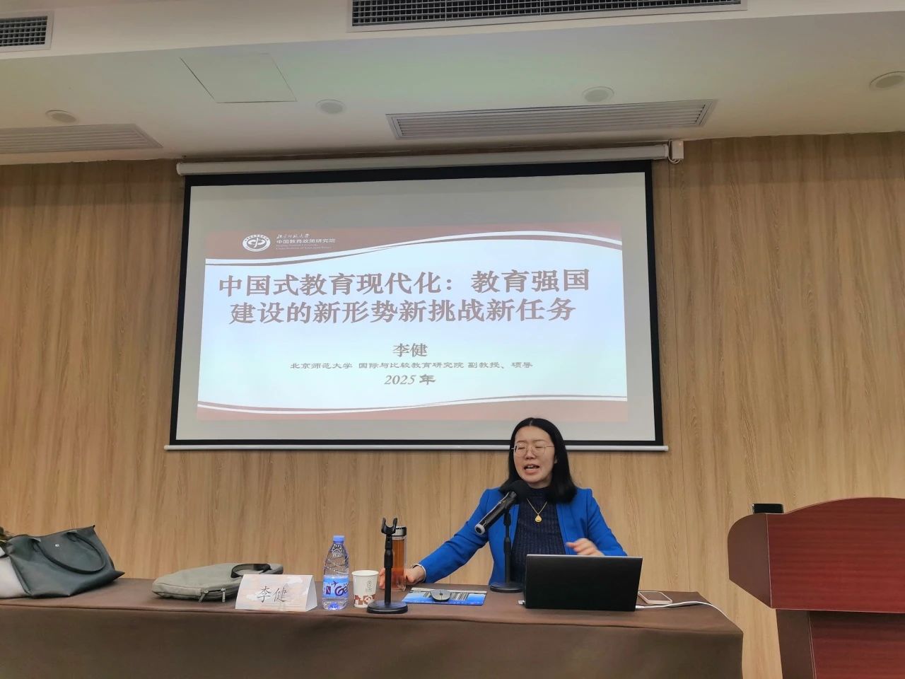 北京师范大学副教授、李健博士为学员作题为《教育强国建设的新形势新挑战新任务》的专题报告。李健以“教育改革路在何方?”“教育规律、政策规律是什么?”为引言,阐述了教育本质在于教育是有目的、有组织、有计划的培养人的社会活动,指出教育正在经历由大变强、由中低质量到高质量转变的激烈变化,强调教育强国强在教育自身要强、教育支撑要强、教育认同要强。他从“新形势:怎样认识当前的教育”“新挑战:当前教育面临怎么样的挑战”“新任务:怎么建设高质量的教育体系”三个方面剖析了教育强国建设的新形势、新挑战和新任务,学员们深受启发。本场报告活动由学员钟伟平主持。