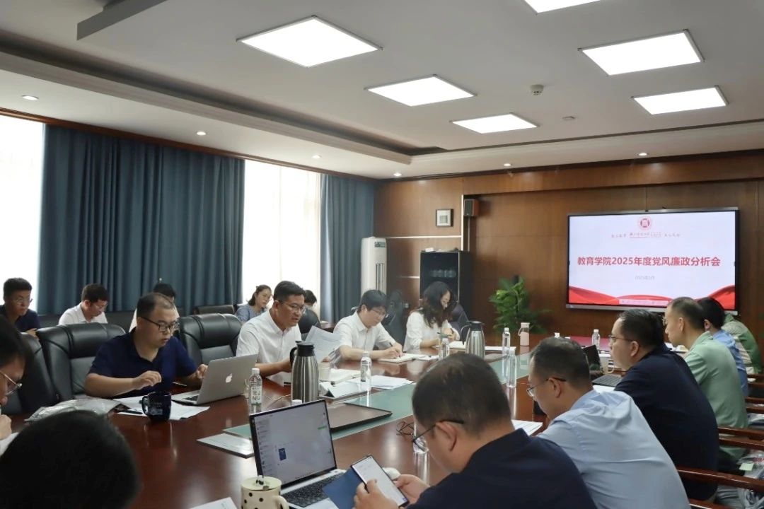 5月19日,kaiyun开云官方网页版召开2025年上半年党风廉政工作分析会,深入贯彻中央八项规定精神,持续深化党纪学习教育成果,就突出问题和重点领域进行党风廉政专题研判。副校长兼教育学院院长林一钢出席会议并讲话,学院党委书记苏煜主持会议,学院党政班子成员王晓均、王占军、张家华、朱佳、石亚兵、陈殿兵、陈法宝以及各行政科室负责人参加会议。