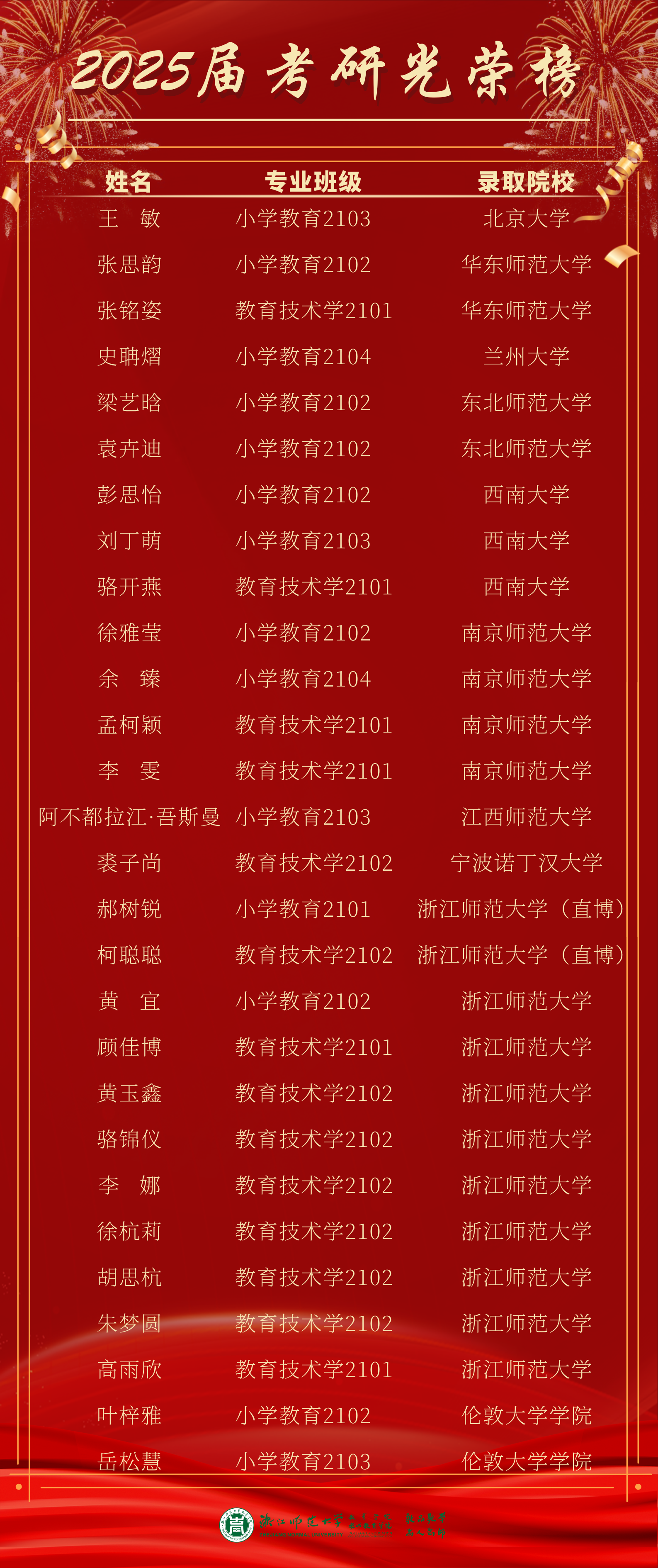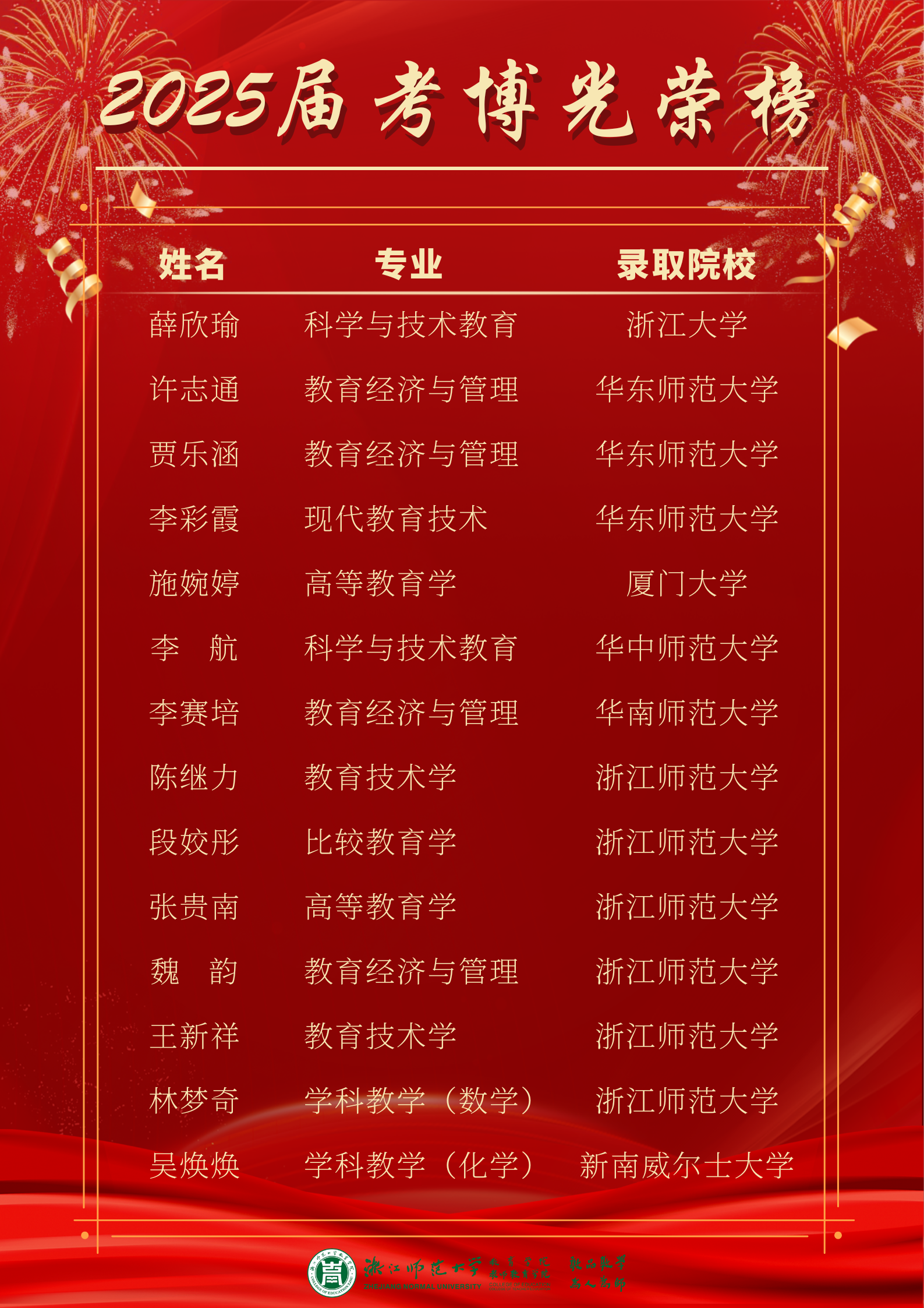 喜报|教育学院2025届毕业生深造光荣榜发布