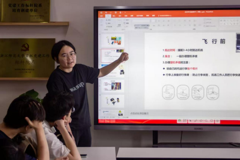 陈佳缘从三方面对出行准备和注意事项进行了补充:一是重申备齐入境材料的重要性,提醒学生务必提前备齐护照、签证、海关申报单等文件及适量外币;二是强调须严格执行报备制度,严禁单独行动,夜间出行要格外注意人身安全;三是结合境外法律风险提示,提醒同学们增强法律意识、筑牢法律底线思维,切勿触碰政治和文化红线。