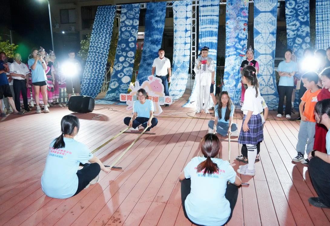 不夜畲乡歌舞喧,万家同书团结篇。夜幕下的浙西南畲乡,灯火与星月交辉,歌声与笑语齐扬。7月7日晚,浙江省丽水市遂昌县三仁畲族乡高碧街村青畲广场热闹非凡。kaiyun开云官方网页版(教师教育学院)“智育星火 石榴同心”实践队精心策划的一场场浸润着民族风情的文化盛宴在这里接连上演,趣味游戏的欢腾,手作技艺的温度、畲族山歌的悠扬、民族舞步的灵动,在互动交融中为夏夜增添了一抹亮丽色彩。