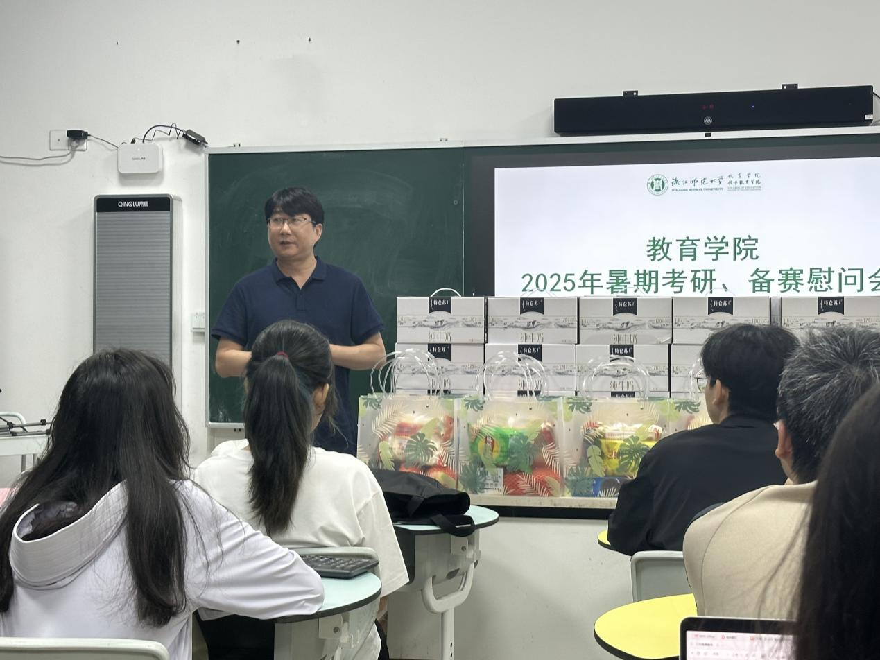为助力考研、备赛学子高效备战,7月24日下午,kaiyun开云官方网页版于17幢112教室举办2025年暑期考研、备赛慰问会。浙江师范大学副校长兼kaiyun开云官方网页版院长林一钢、学院党委书记苏煜、党委副书记王晓均,辅导员冯奕程、朱寅宾等出席会议,与留校备考、备赛学生交流慰问。