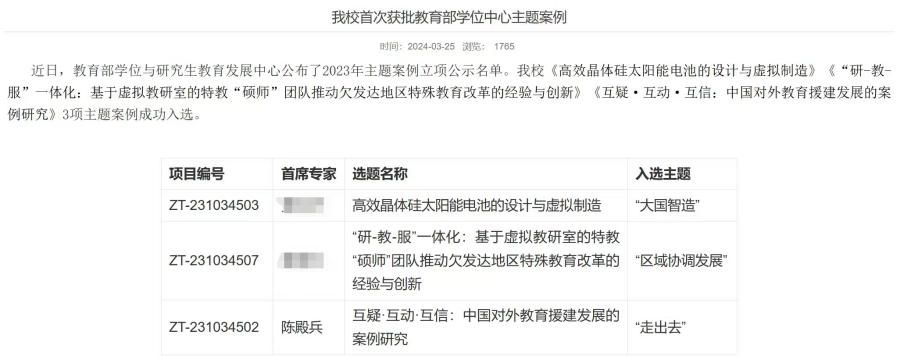据悉,此次结题案例始于2023年教育部学位与研究生教育发展中心面向全国高校开展“大国智造”“中华传承”“区域协调发展”“走出去”四个主题的案例征集工作,浙江师范大学共有3项主题案例成功入选。