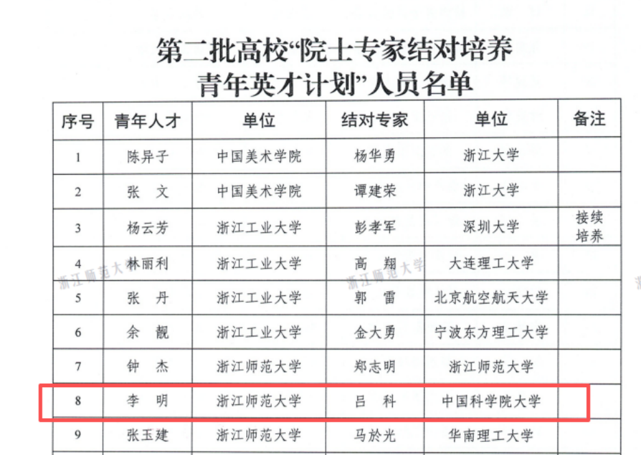 李明教授入选第二批高校“院士专家结对培育青年英才计划”,同时获评金华市青年拔尖人才,彰显了其在教学科研与青年发展中的引领作用。