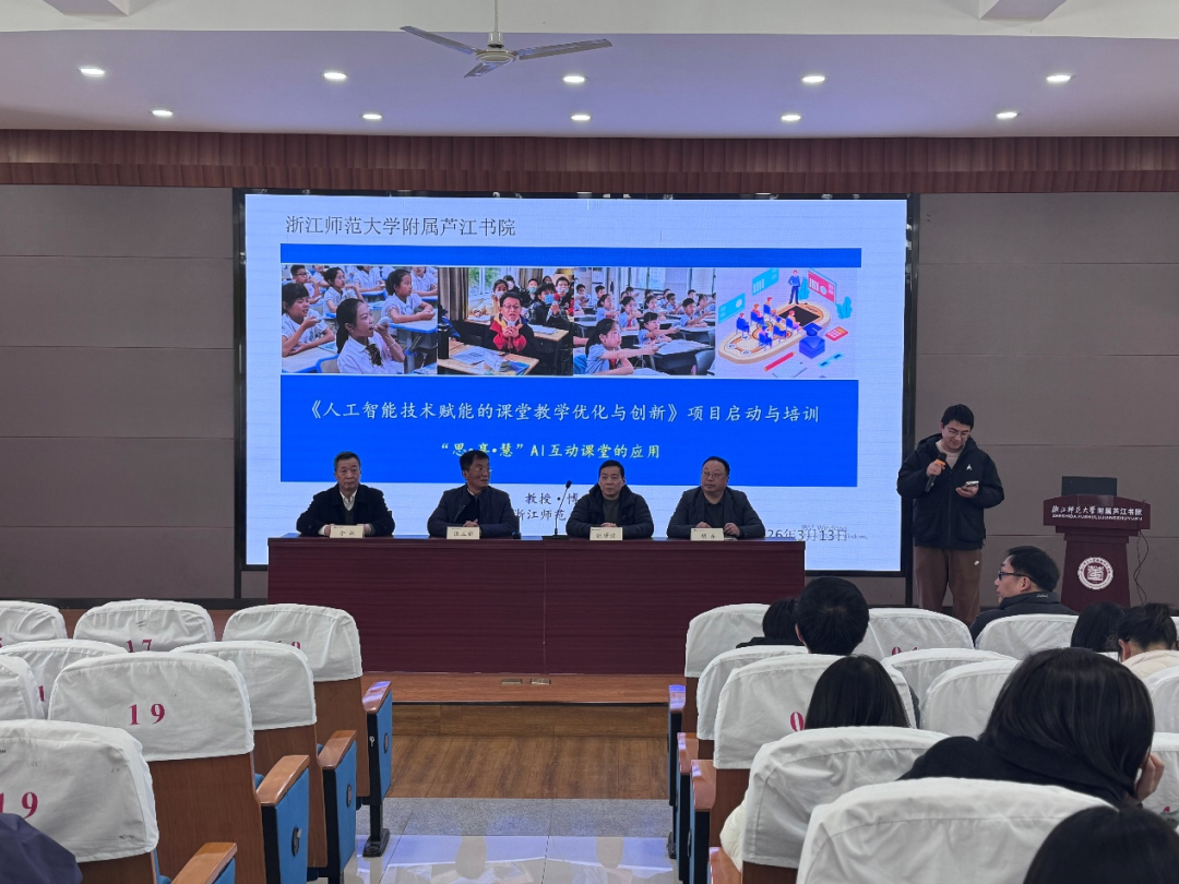 3月13日,浙江师范大学附属芦江书院举行《AI赋能课堂教学优化与创新》项目启动与培训暨“思享慧”AI互动课堂应用研讨活动。李欣教授详细介绍了“思享慧”AI互动课堂的功能及其在助力校内研讨课、展示课中的实现路径;随后,学院张立新教授作了《AI赋能课堂教学优化与创新》的主题讲座。
