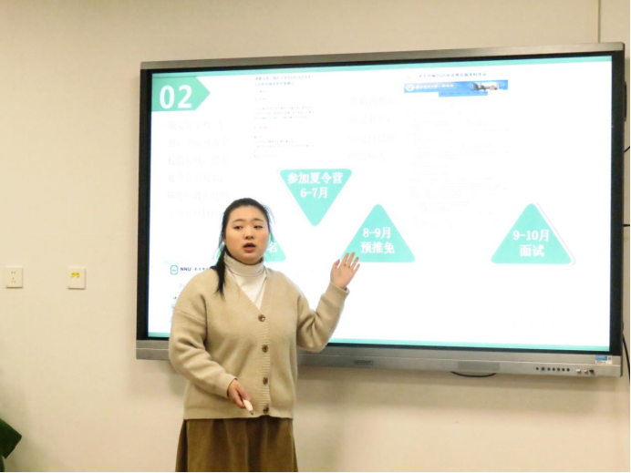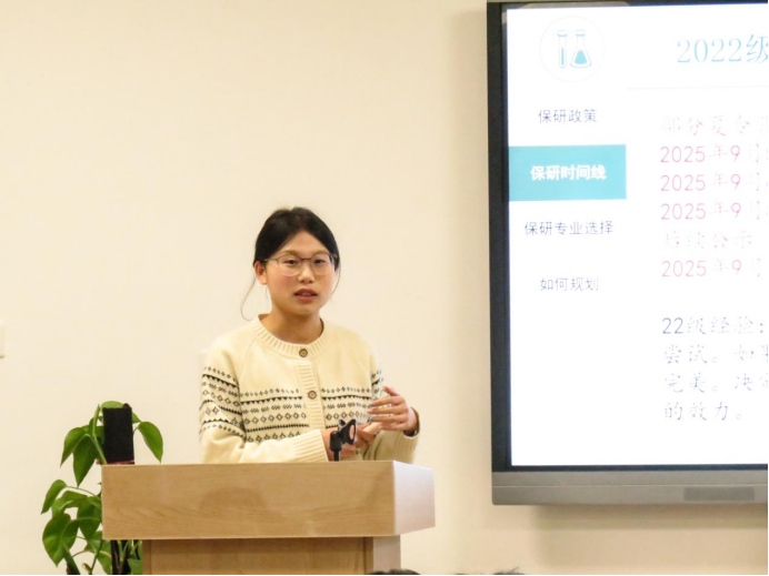 许芷轩(教育技术学2022级,现已保研至华东师范大学现代教育技术专业)从专业学习、科研实践到综合素质提升,分享了全方位的实用备考技巧。她重点阐述了本专业保研与跨专业保研的选择逻辑,并针对不同年级学生提出了个性化建议。她鼓励大家在踏实备战的同时,也要用心体验大学生活,以积极阳光的心态走好保研之路。