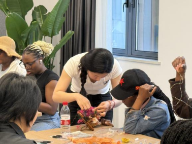 学子们从稳固花篮底座起步,以仿真花材勾勒层次,在灯笼胚体上挥洒创意,最后将LED灯珠巧妙嵌入,每一步都凝聚着巧思。在志愿者一对一的指导下,国际学生们轻松上手,沉浸于手工创作的乐趣中,深刻体会到传统工艺与现代美学结合的独特魅力。